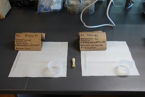 I place a 2 oz plastic cup on each paper towel that I will use for rehydrating the samples. You can use any small container that you have access to.