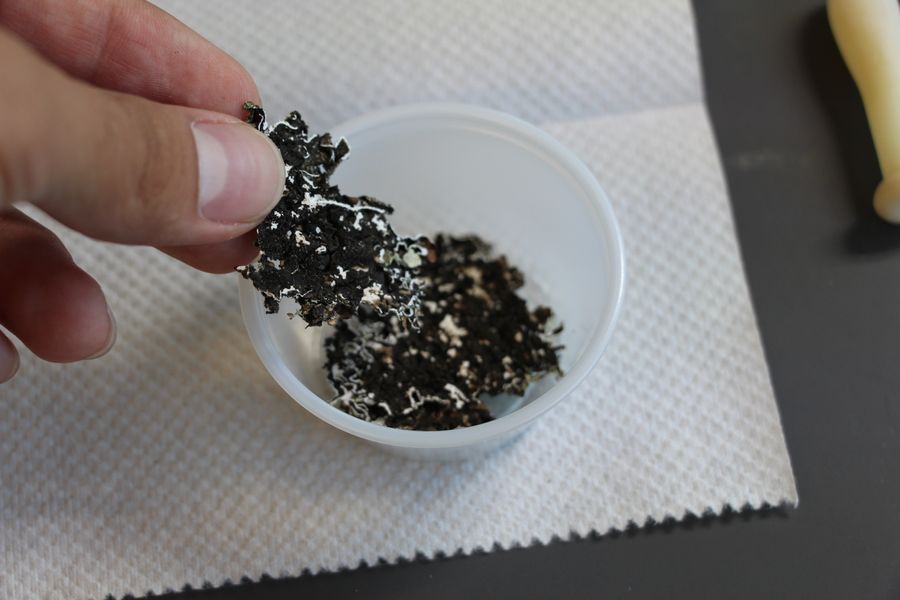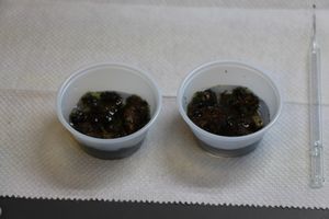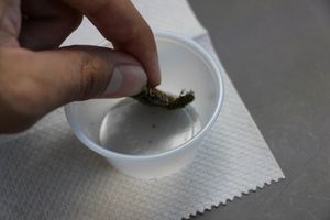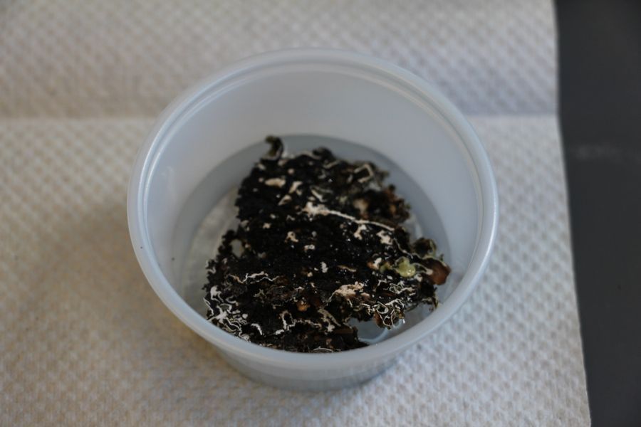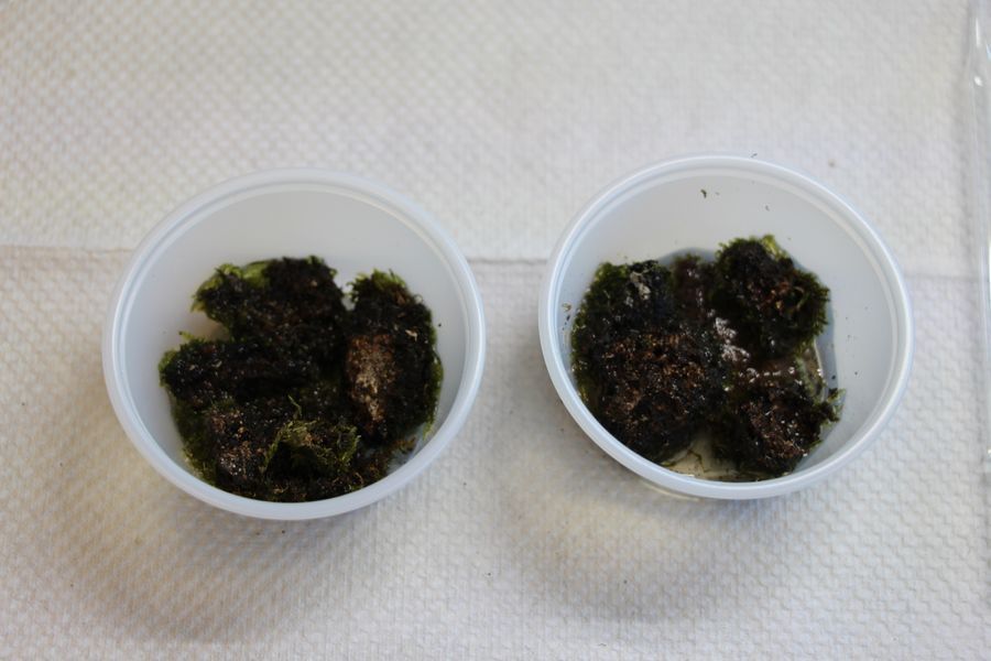 Place your collected sample face-down within the plastic cups. This helps to better soak the parts of the moss and lichen that are likely to house tardigrades.