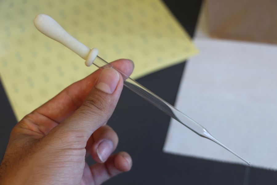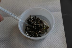 To make sure that my samples are sufficiently soaked, I use a pipette to submerge them in the water. Again, you don’t need a pipette. You can do this with a stick, your finger, etc.