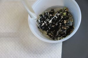 If the cup becomes too full to allow everything to soak properly within a small volume of water, grab another cup and transfer some of your sample, dividing the contents so that they will fit.