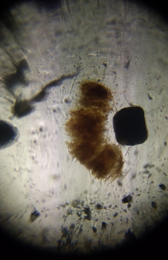 Powdery mildew conidia of cucurbits are viewed under foldscope