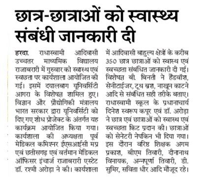 News article published in Patrika news paper, Harda district edition, page number 10, 8th February, 2019