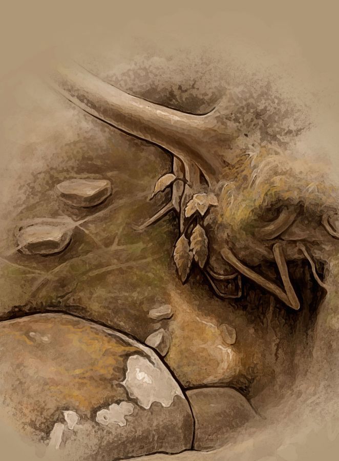 This sketch depicts an overview of my space. There are rocks covered in moss & lichen, and a small stream bed with water trickling through. A good size tree leans over the stream bed, with exposed roots brushing against the ground. I didn’t want to disturb my habitat too much, so I collected a very small amount of moss off the largest rock, seen in the bottom left of my sketch. I let the samples sit in water overnight, and this is what I found the following day…