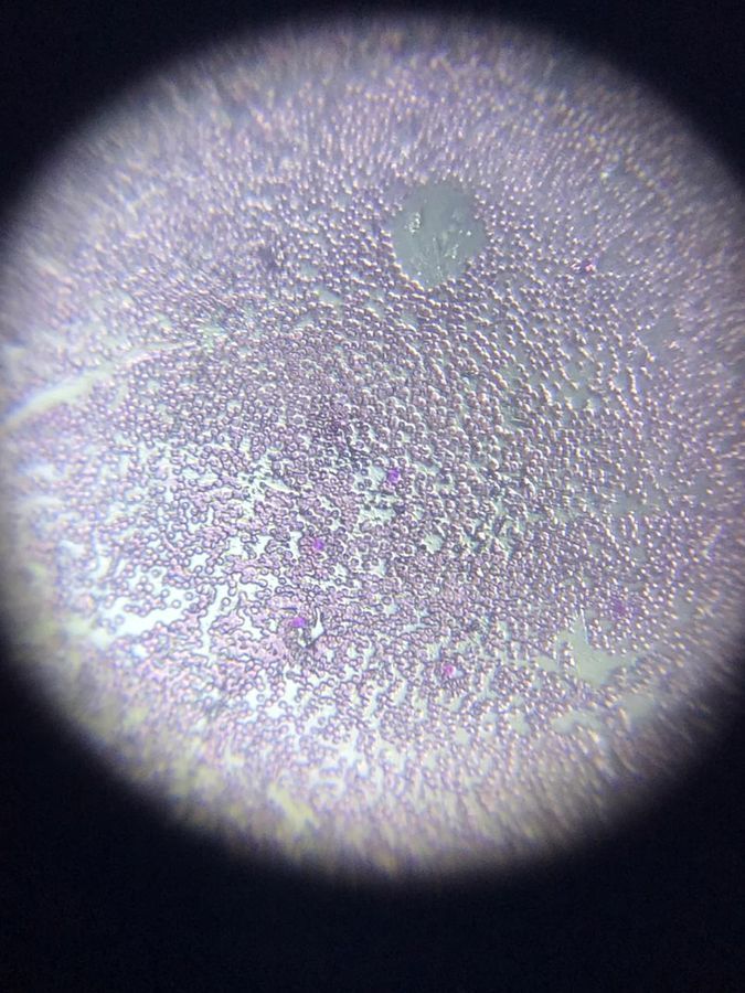 Hola muy buenas a todos de la comunidad de Microcosmos :3 , el día de hoy vengo con esta pequeña información que quiero compartirles acerca de como obtener mejor enfoque al usar laminillas con el Foldscope , en mi anterior Post publique fotografías de un ftotis de sangre, días pasados había tratado de tomar fotografías de esta pero salían imágenes con un enfoque muy malo y no se reconocía nada después de una serie de pasos y pensar un poco encontré la solución que continuación les comparto 🙂 En la primera fotografía se muestra el frotis sin el método, donde se observa desenfocada y sin detalle