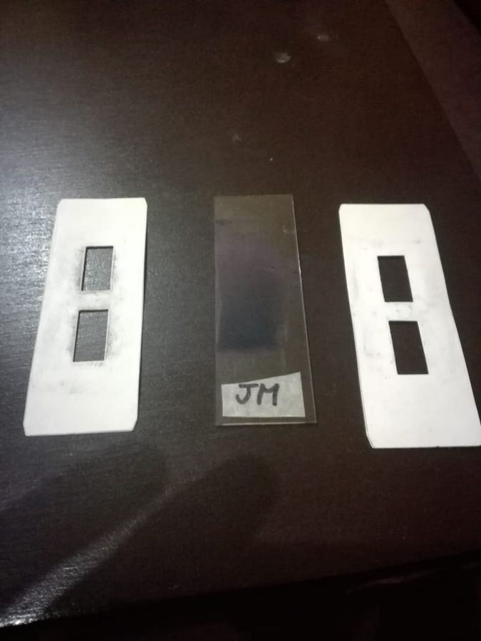 Segundo paso: Colocar la laminilla de cristal sobre la primera que anteriormente se coloco (importante poner el lado de la muestra mirando hacia abajo)