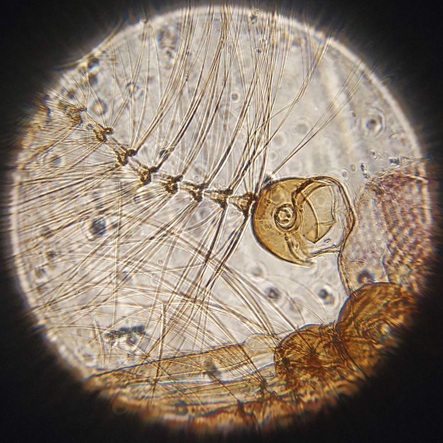First foldscope pic of mosquito mouthparts slide.