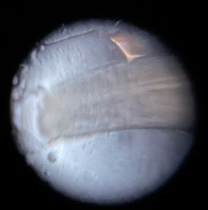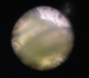 Echeveria elegans cuttings beginning to propagate. Looking closely at the image above you can see two small pinkish strands growing out of the succulent tip in the front, marking an age of rebirth. With new life so near, this marked the perfect opportunity to use my Foldscope to take a look closer and see what exactly was happening at that growth site.