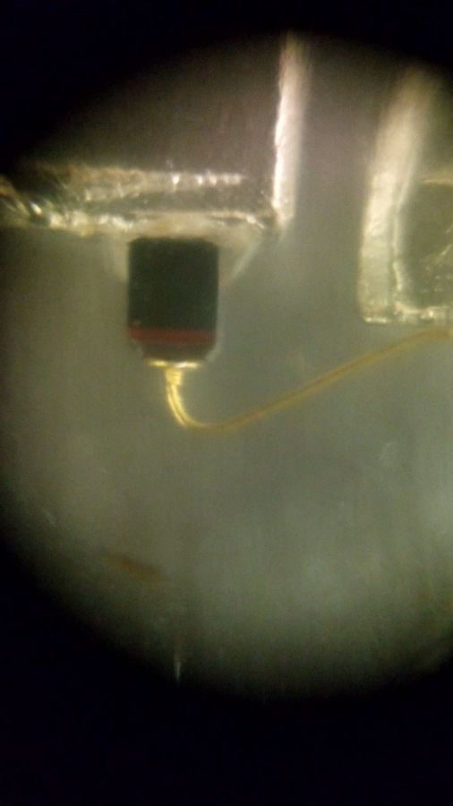 I saw @TubeTimeUS on twitter with cross-section of electronic components, thought it would look awesome under a Foldscope. To do this you will have to use sand paper to grind down a side of the LED with 100 grit and work you way up to a 1000 grit you have to this until you can see the tiny wire under the Foldscope. If you don’t have the superfine sand paper you can dry coating the roughly grinded LED with some superglue.