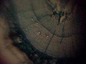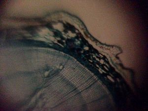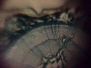 A commercially prepared slide (AmScope) containing a cross section of a Tilia stem was imaged by Amani Routte (age 6) in Kigali, Rwanda using a FoldScope that was equipped with a 140x lens, LED light module, and iPhone (5) camera.