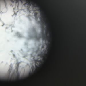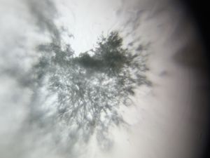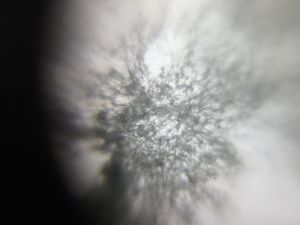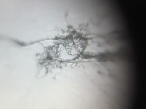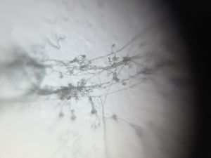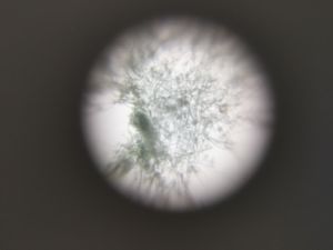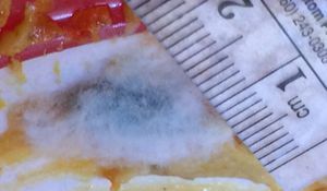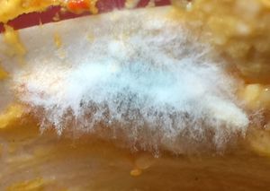 Mold which was growing on some stale hummus in the container in the refrigerator.