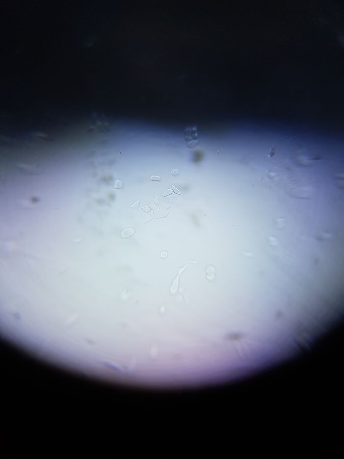 I work at the biophysics department and convinced a coworker to let me have a look at the cancer cells he is working with. We put a glass slide in a solution of trypsinized cells and let them attach over night. We got some nice pictures. I really like that you can see the nucleus of the cells.