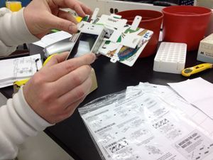 The Foldscopes arrived a month ago and I shared them with a few fellow medical laboratory scientist. The plan was to see if we could put it together. It took about a half hour to assemble. We were happy to get in on this project and eager to get started. We were able to use traditional glass microscope slides and the tape slides provided in Foldscope kit. However, we discovered that there may be issues with the stability of the paper scope when examining blood cells or use with medical testing. The goal was to be able to count many tiny cells in a sample of blood. The scope or item observed must be very still. The paper microscope did a good job of allowing us to view the cells and to use our cell phones to amplify the image. We will continue to see how many slides a paper microscope is able to handle and how durable the Foldscope remains after multiple use. We also plan to write a procedure highlighting how to use the Foldscope.