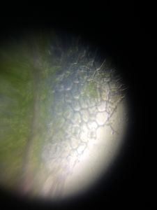 Tradescantia is a monocot plant with purple colored long leaves having parallel venation. While my mentor @ GGDSD was engrossed in staminal hairs, I tried my hands at making a leaf peel. The amazing part was that many stomata were ripped while peeling the epidermis and they floated in water, as I had made a wet mount. I was able to capture one showing a stomatal pore.