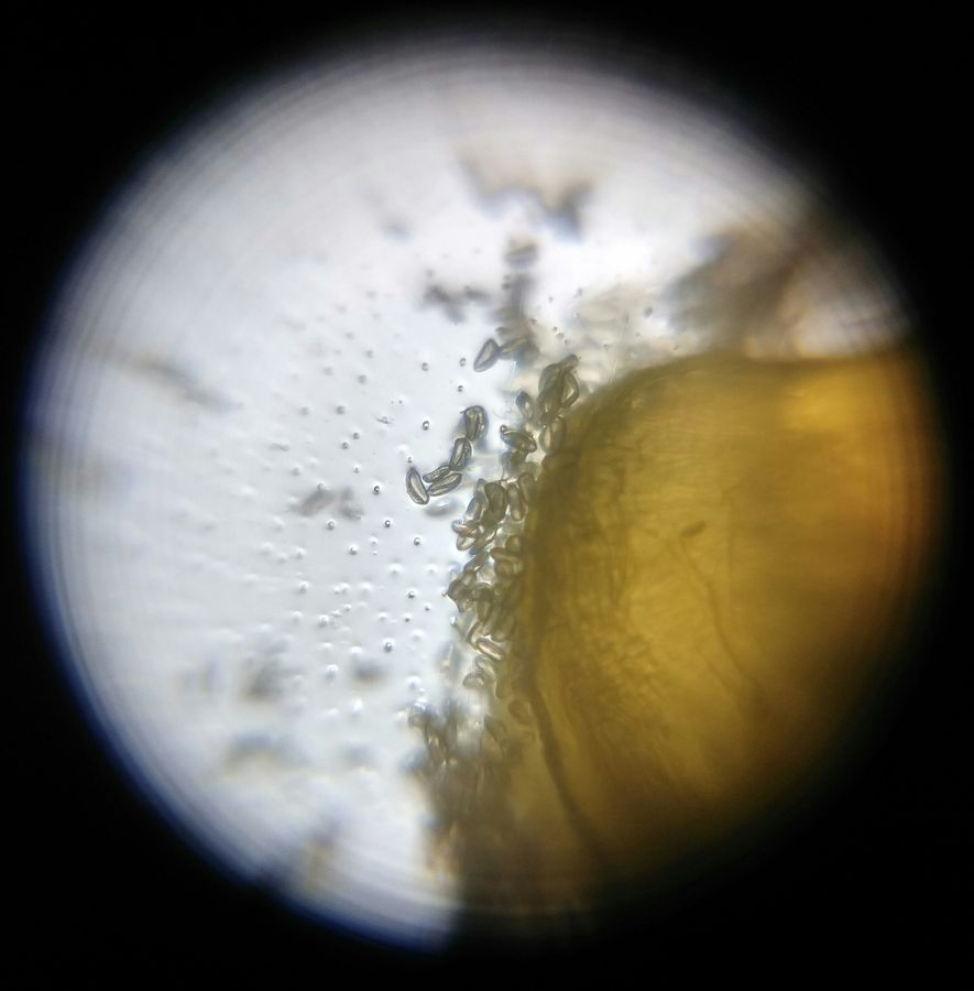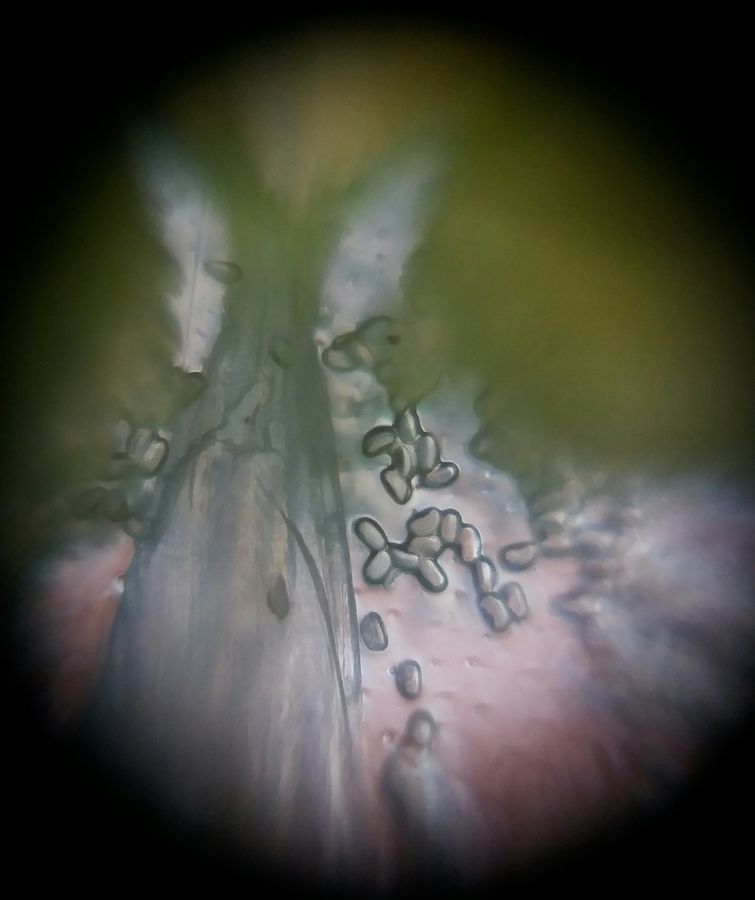 3. I picked up one stamen and placed it on glass slide.Teased its anther to break anther wall and then observed it under foldscope.
