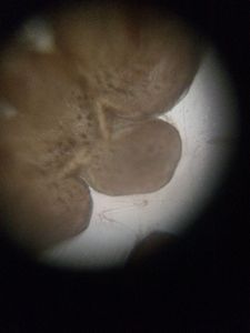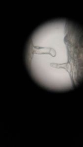 A transverse section of the ovary was also observed under the foldscope, but only ppartially because of its large size and numerous ovules could be seen.