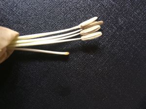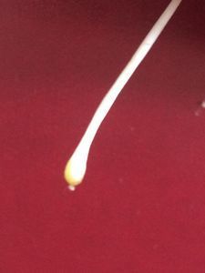 The long filaments were found adherent to the petals at the lower edge and many pointed multi-cellular trichomes were found along the sides of the filaments.