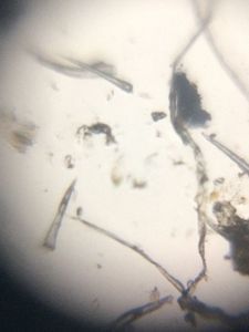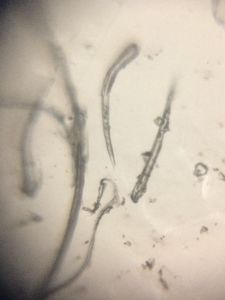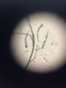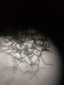 Surprisingly, another fungal disease symptom – a rotting spot was also visible on the same husk. I took the unroasted cob and under the foldscope viewed the different types of fungi.