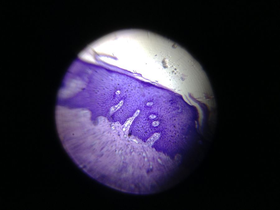 The section shows exocervix lined by covering squamous epithelium and stroma as seen under Foldscope from Department of Pathology of R D Gardi Medical College, Ujjain