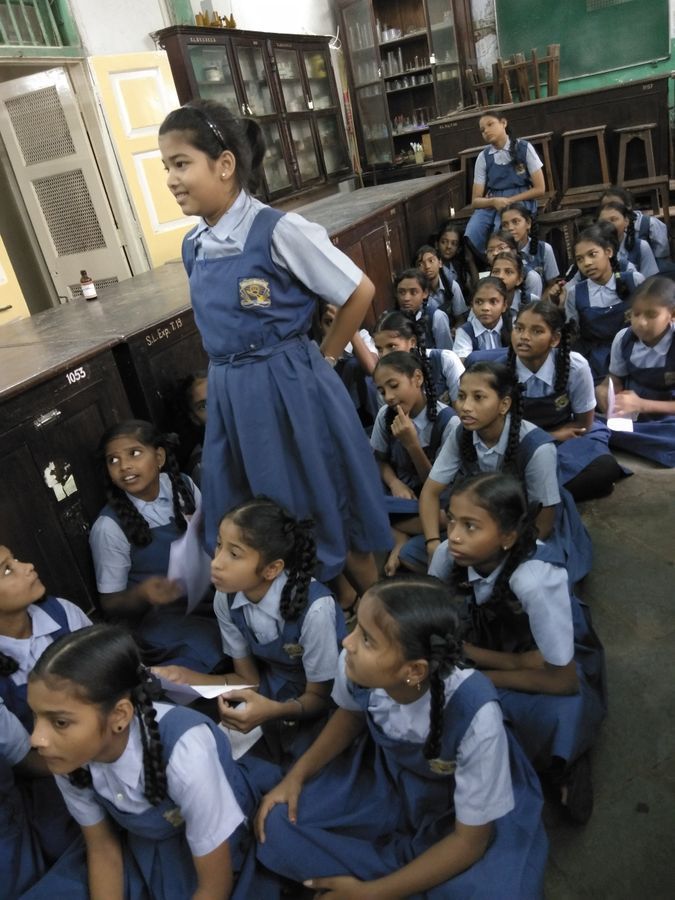 An outreach for school students at Students’ Literary & Scientific Society’s High School, Nowroji Seth Street, behind S.K. Patil garden, Charni Road(E) on the 27th July 2018 was conducted by the Department of Life Sciences facilitated by the Star DBT Scheme at K.C.College. The activity was assisted by the students Vikas Gurudu and Mausam Yadav from S.Y. B.Sc. who were trained to use the Foldscope. An alumni of the school Dr.Archana Thite from the Dept of LifeScience at K.C.College coordinated the outreach