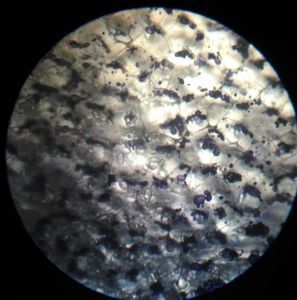 Starch grains in potato stained with dilute Iodine under Foldscope