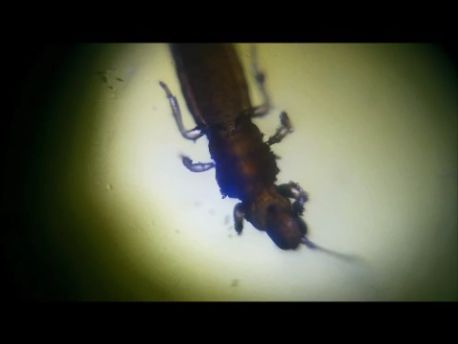 I was investigating the pollen of a really interesting mutant Azalea (I shall describe that in a separate post). While scanning the field of the slide, my eyes fell upon this immature insect. With the naked eye, it looked like a little spec and so I couldnt spot it in the first place. I showed it to my local expert and he felt it was an immature beetle. The insect fits in one field of the foldscope low power lens, suggesting that its length is about a mm or so. Many aspects of the internal anatomy can be seen, such as trachea, gut contents and muscles, albeit transiently. If anyone in the forum can recognize this insect species, I will be grateful. Note that you are seeing the insect belly up, i.e. from the ventral surface. You can also see the proboscis of the beetle. It looks like a curved dagger. I have now seen this quite a few times and at time get a strange impression that we are looking at each other. We often think of bees and butterflies as pollinators, but when one sees such an insect covered in pollen, you know that there are many other players in the great pollination exercise.