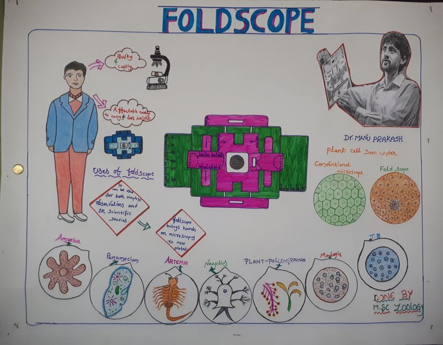 One day Foldscope Orientation Workshop was conducted at D.K.W.Govt.College for Women(A), Nellore on 27.8.18 . On this occasion, the department of Zoology organised Poster Presentation Competitions on Foldscope and its uses. Students prepared creative and innovative posters and the winners were appreciated and gifted with prizes. I personally presented a foldscope to I prize winner. These are the posters.
