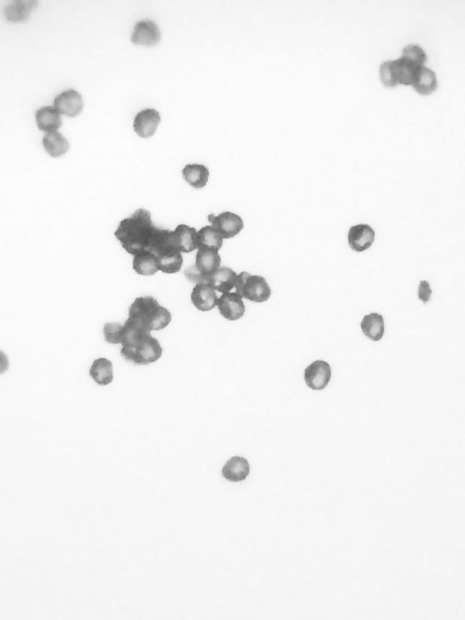 Going for a walk along the Silvi park in Mohali near my house, I spotted a broken flower branch. I was unable to identify the flower, but thought of exploring its pollen under foldscope. The pollen were small in size, round in shape and smooth walled.