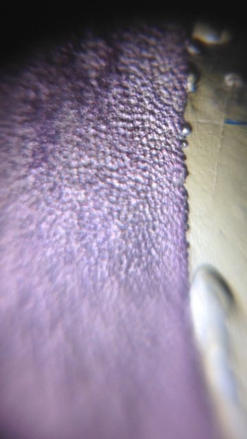 On a fine California afternoon, I found myself in the Engineering Quad, wondering what flower petals would look like on a cellular level. So I plucked a small purple flower from a plant and put it onto a slide. As I focused the Foldscope on the petals, I was amazed at how tightly packed, uniform and distinct the cells were, giving the petal a rough-looking texture. So my partner and I decided it would be interesting to compare plant cell density and appearance to animal cells. We took a skin sample using sticky tape, and the Foldscope revealed loosely packed, shapeless skin cells. While an actual piece of skin would be more comparable to the petal we examined in terms of cell density, the cellular shape difference is clear nonetheless. It would be interesting to see if plant cells retain their structural integrity when separated from the other cells. I wonder if cell density increases towards the exterior of animal appendages like fingers; in the flower petals, there is an apparent increase in cell density at the edges. Contributor: Carolyn Rice Other group member: Taylor Sihavong