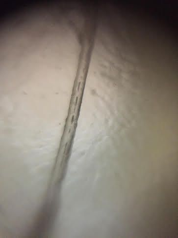 As for the gray hair slide, the strand is translucent. An unexpected feature in hair was the central dark streak along the length of hair. If we look back at the previous slide, the samples showed distinct lines running down it. The central line is broken in this gray strand. I predict this internal structure may be a protein associated with hair pigment and age. Loss of pigment could potentially cause this streak to break down. As a followup, future Foldscope explorers could further investigate other hair types and colors to see if the observations above are consistent for different people’s hair! This could help us understand why our hair acts the way it does. Anna Le