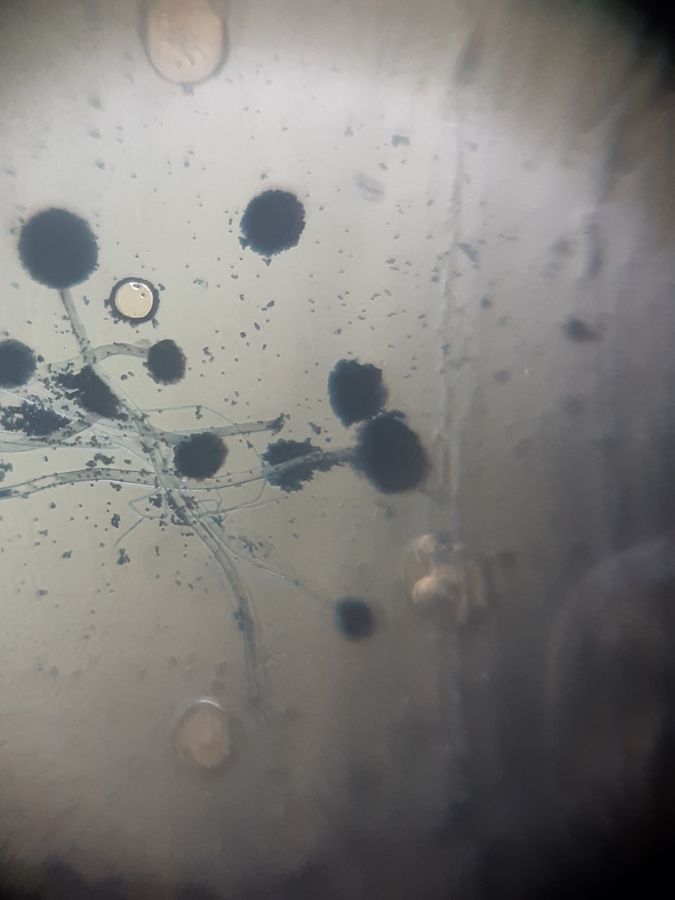 In drinking water sample these fungi the internal structures after growth on the media was observed through Foldscope. This is Aspergillus sp.