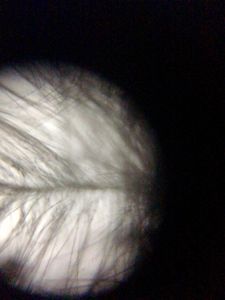 During the visit at Ropar wetlands, feathers of different kind of birds were spotted. The students collected these samples and later observed these through foldscope. Sample -1 was a small feather of grey colour Size – about 2.5 -3 cm The feather was fluffy and slightly wooly in appearance