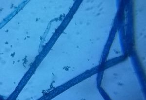 The Rhizopus species was isolated from a milk sample collected from a case of chronic mastitis. The Rhizopus species was found to be a co-pathogen with bacterial pathogens. The mould can invade the tissues with reduced immune mechanisms. (Sample collected and processed by Dr. Mamta Choudhary, Dr. P. Mooventhan & Ms. Yogita)