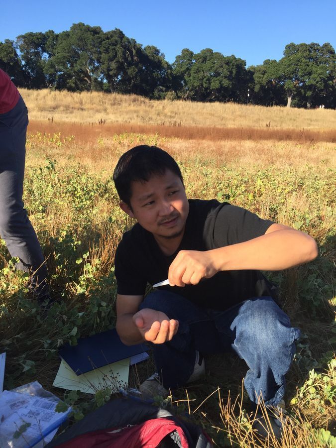 Lake Lagunita is a small water body right on Stanford campus – minus the water. I am sure you have all heard of the California drought; I have not seen water in the lake ever. Actually, just before yesterday; I had not even seen the lake although it is a 5 min walk from my lab. I love ecology and I find it surprising that it I had not accidently wandered on to it. But with the enterprising spirit of our lab interns – Alice, Antonio, Brian and the seasoned Mark and Tom; with a visitingschool teacher Chris Tolentino (Biology teacher at Richmond High School) we all found ourselveves at the bottom of a dry lake. And what a site..