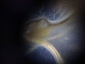 Question: What will the toad’s heart and liver cells look like? Hypothesis: We think the toad’s heart would look thick and moist and that the liver will look red and moist. Materials: Foldscope, knife, tweezers, slide, tape, scissors, gloves, safety glasses, clear nail polish, pipette Steps: The heart and liver were removed from the toad and thin samples were cut with a knife. The samples were placed on the slide using tweezers and a pipette and covered with tape. The slide was placed on the Foldscope and the specimen was studied using a phone camera. Conclusion: The heart and the liver looked very different from each other under the Foldscope.