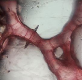 Presence of sclereids in the petiole of E. crassipes – Stained with Tryphan blue