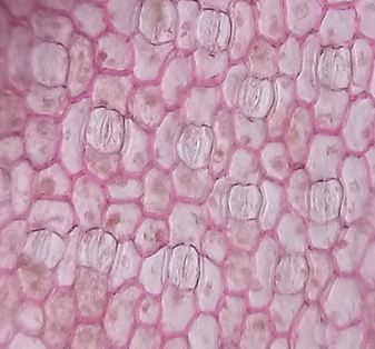 Epidermal peeling of leaf of E.crassipes stained with safranin showing paracytic stomata