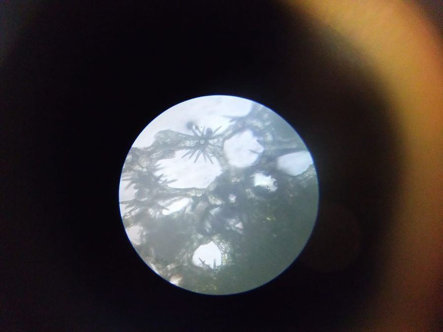 Crystals of calcium oxalate were seen through the foldscope in the section of Nymphaea leaf.