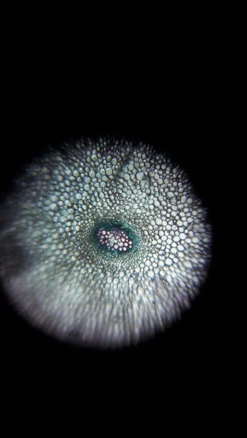 Fig ; T.S of Selaginella Rhizophore Kingdom : Plantae Division : Lycopodiophyta A thick walled epidermis is the outermost layer. Root hairs are absent . Presence of few thick-walled outer layers of cortex. Stele is monarch and exarch like root.