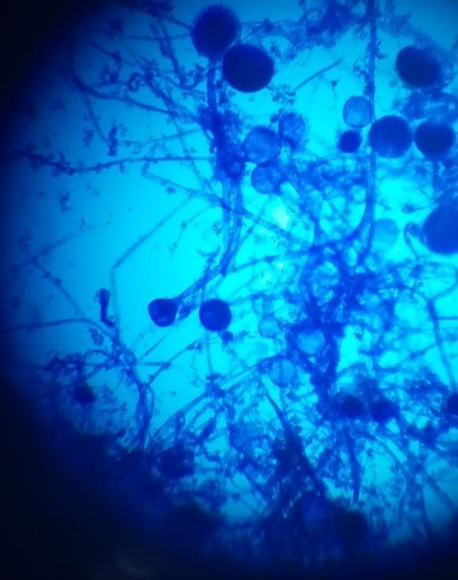 Fungus grown on curd was stainned with Lactophenol and viewed under Foldscope.