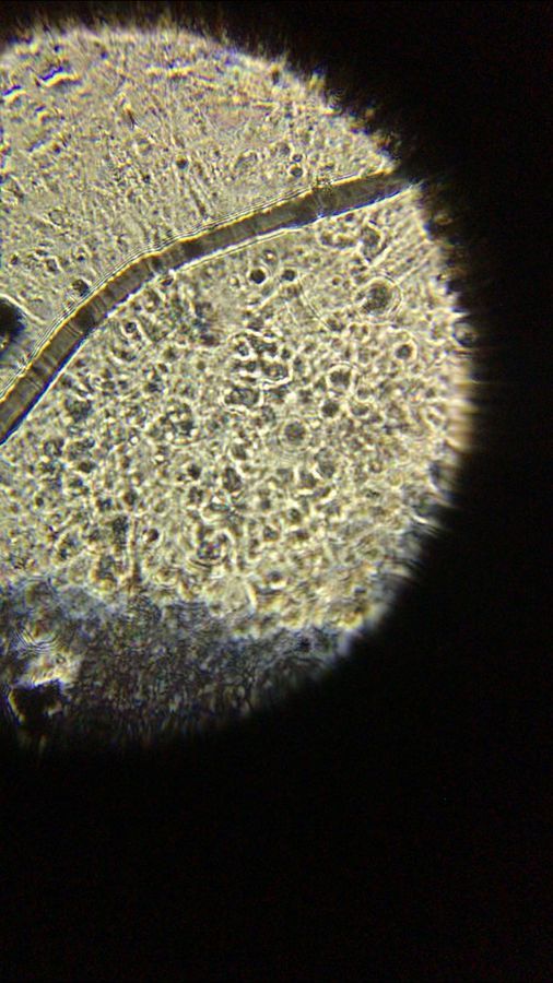 Today in our ecology class lab at Princeton we used Foldscopes to investigate the world around us. I stuck the slide sticker to my skin in order to collect material from my skin. It was initially challenging to find an image, but with some patience and tinkering I was able to get a great picture of cells and a hair. This is a great tool to inspire curiosity in the world around you! It is amazing how folded paper and some small metal pieces can produce such an image.