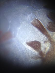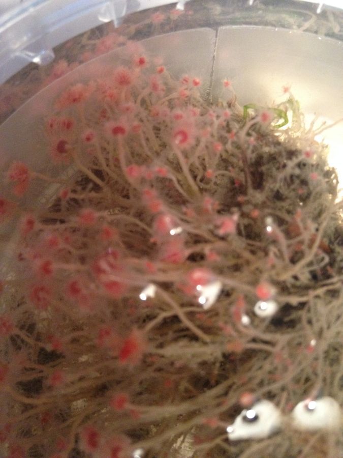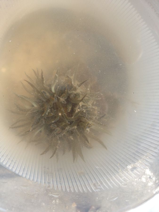 I dropped it into my sample container and watched it bloom. Its tentacles created an interesting buzzing sensation on my fingers when I touched them. If I were a bit of plankton, that, of course, would have been my end. Earlier in the year, I had the opportunity to look at a smaller anemone in NJ, this one attached to a floating bit of seaweed. Imaged with a macro lens (one I harvested from an old and broken camera), one could see the way it had arranged itself, spread out like a small flower.