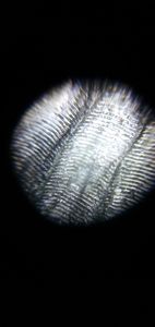 One of the adaptation of fish is the presence of scales upon their skin. These scales protect their skin from attacks by predators ,parasites and other injuries .The morphology of a scale is used to identify the species of fish it came from .Cartilaginous fishes are covered with placoid scales. Bony fishes are covered with cycloid, ctenoid or ganoid scales. Some of the scales of bony fishes were observed under the foldscope and were found to have cycloid scales.