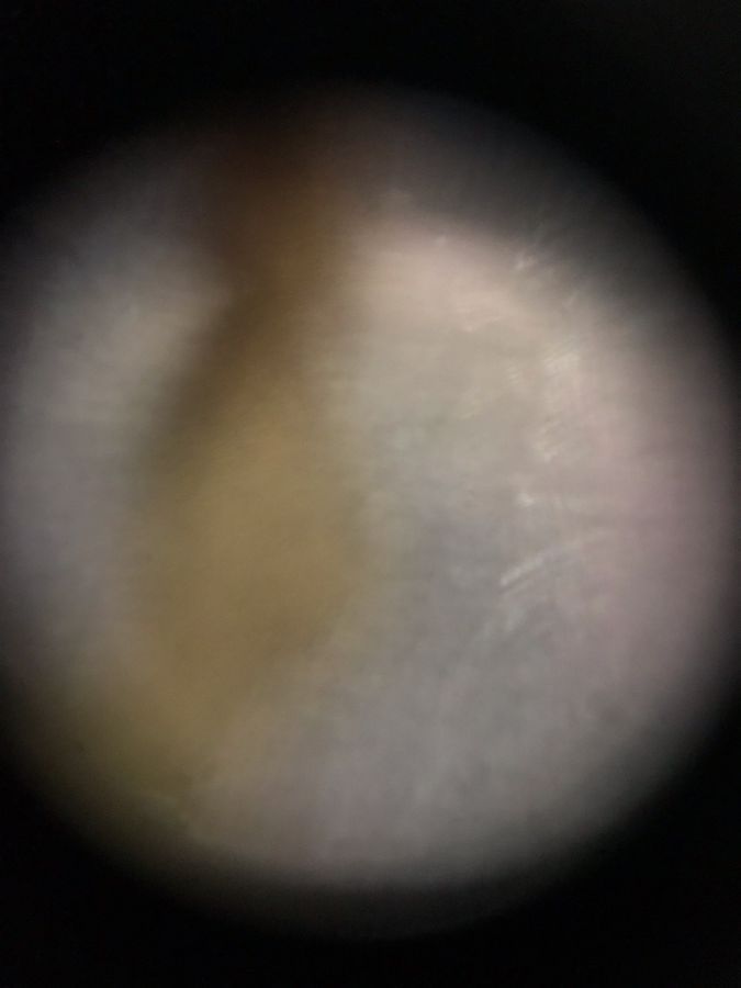 Today in my ecology lab at Princeton University, I picked up a dried leaf from a grassy area by Washington St. and Lewis Library. In the photo above, you can see a picture of a small piece of the dried leaf under the foldscope. What I see is light brown pigmentation where the dried leaf sample is. Although the photo is undoubtedly blurry, it is clear where the dried leaf sample is. It is also interesting to note the somewhat twisted shape of the sample. The background of the photo is gray and has some smudges which might be from dust.