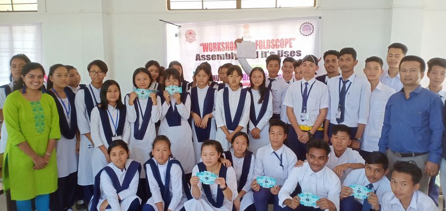 Workshop on Assembly and Use of Foldscope by BMS College of Engineering, Bengaluru in association with North East Twinning partner, Dera Natung Government College, Itanagar at Government Higher Secondary School, Ganga, Itanagar