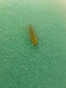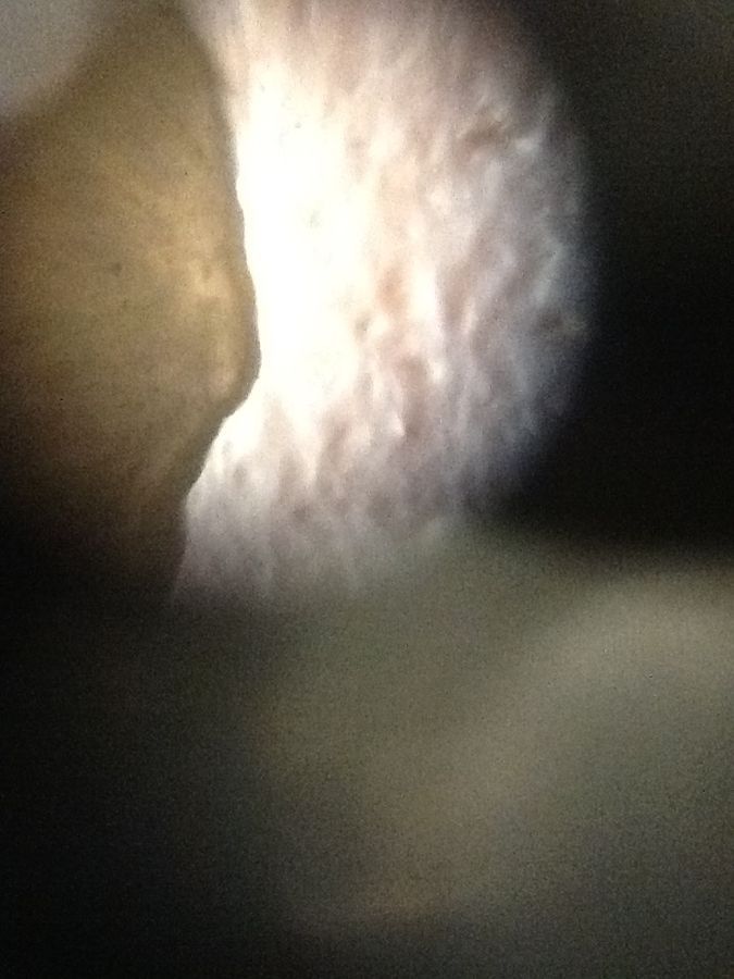 (Macro pics with laser pointer lens on iPad camera; micro pics with 140x Foldscope) When I saw this flying insect, we were doing Foldscope. I was very excited to be doing it and grabbed a yellow (dandelion) flower I saw sitting on the table (from the prior class). I played with it a little and saw a little teeny tiny bug and decided I was going to look at it in my Foldscope. I made a little slide for it to be in (with a sheet protector, made into a small sleeve). (It escaped and then) it started shaking and moving its back part of its body. I thought it was laying eggs, but it was trying to fly away, and (something) fell off (onto the table) when it flew out into the middle of the room! – Nate