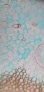 chromosomes, vascular bundles, mesophyll cells and spores as seen under foldscope