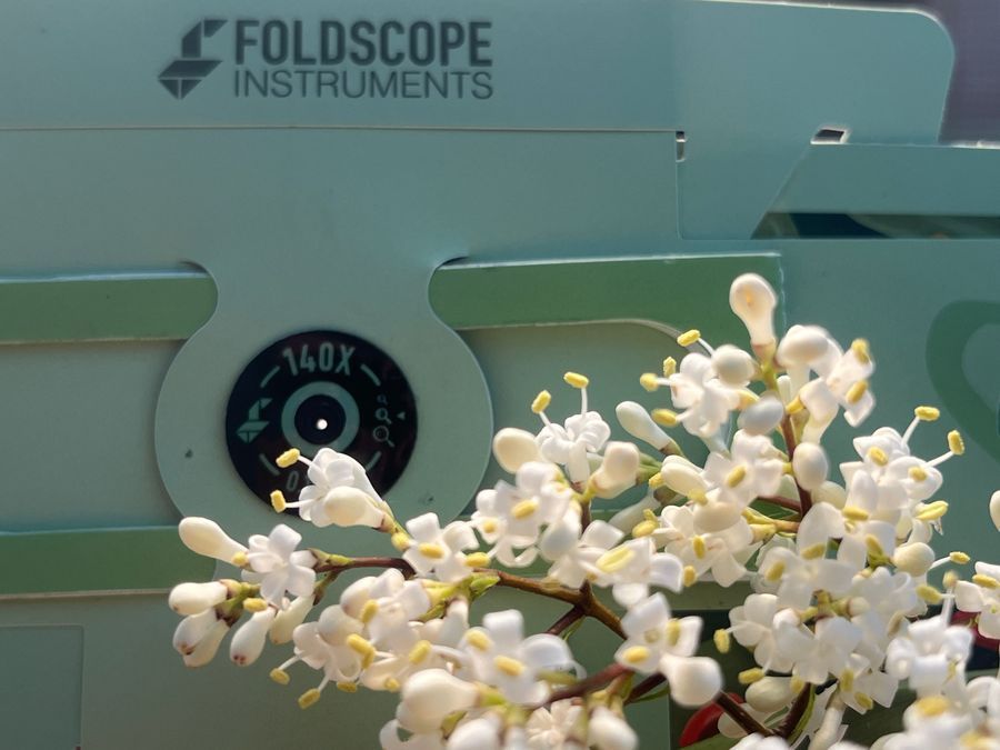 These flowers caught my eye in my driveway this morning, so you know what I did, right? Of course, I took a look at the pollen under my Foldscope!