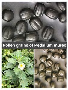 Pollen grain of Hibiscus mutabilis which white in colour having many spikes.